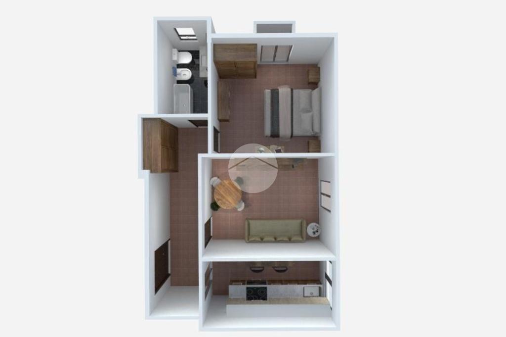 La soluzione è cosi composta: ingresso su disimpegno, cucina abitabile, soggiorno, una camera matrimoniale con balcone e bagno finestrato. Completa la proprietà una cantina di pertinenza.
