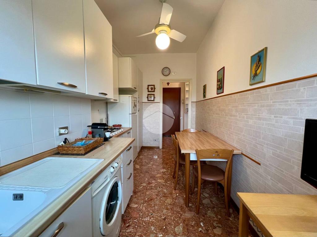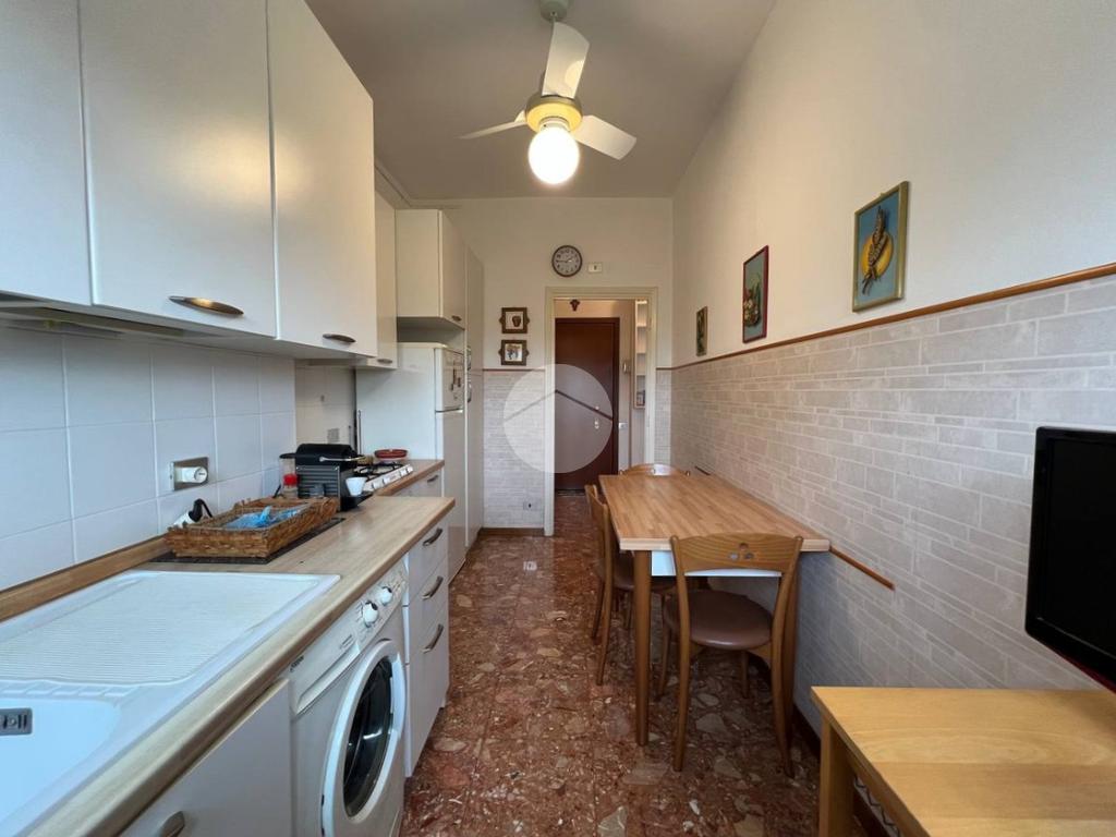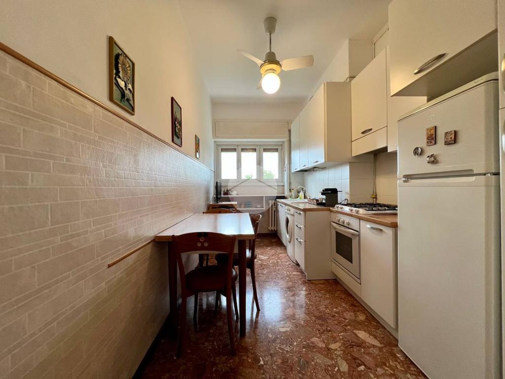 L'appartamento è in buone condizioni interne: porta blindata, infissi in alluminio doppio vetro, pavimento in marmo originale in tutti gli ambienti. Presente l’aria condizionata in soggiorno e in camera da letto. Riscaldamento centralizzato. Doppia esposizione angolare panoramica orientata a sud-ovest.