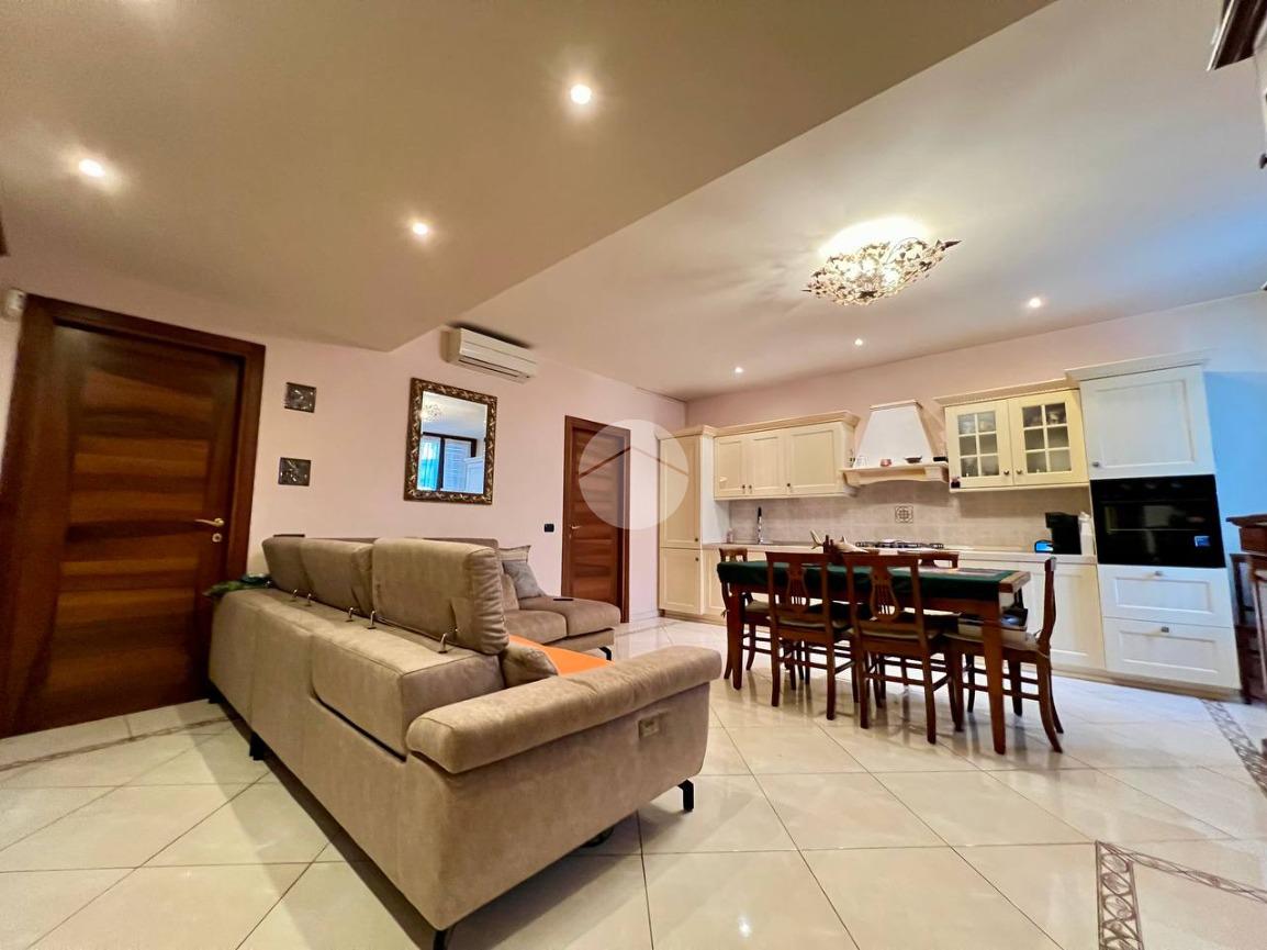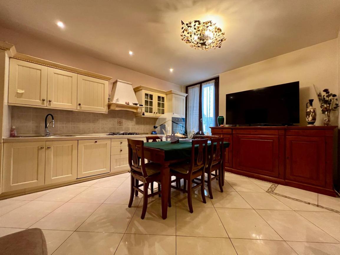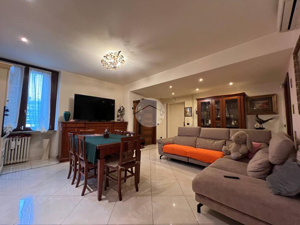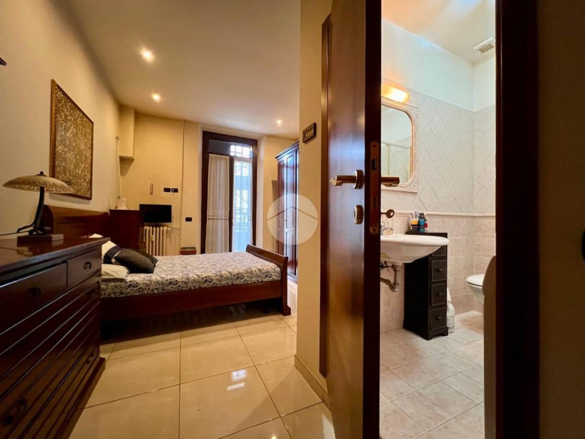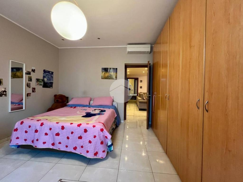 L’appartamento è composto da ingresso su ampio soggiorno con cucina a vista, due camere matrimoniali di cui una dotata di bagno privato e balcone che affaccia all’interno del cortile condominiale, antibagno e bagno finestrato. Completa la proprietà una cantina di pertinenza.