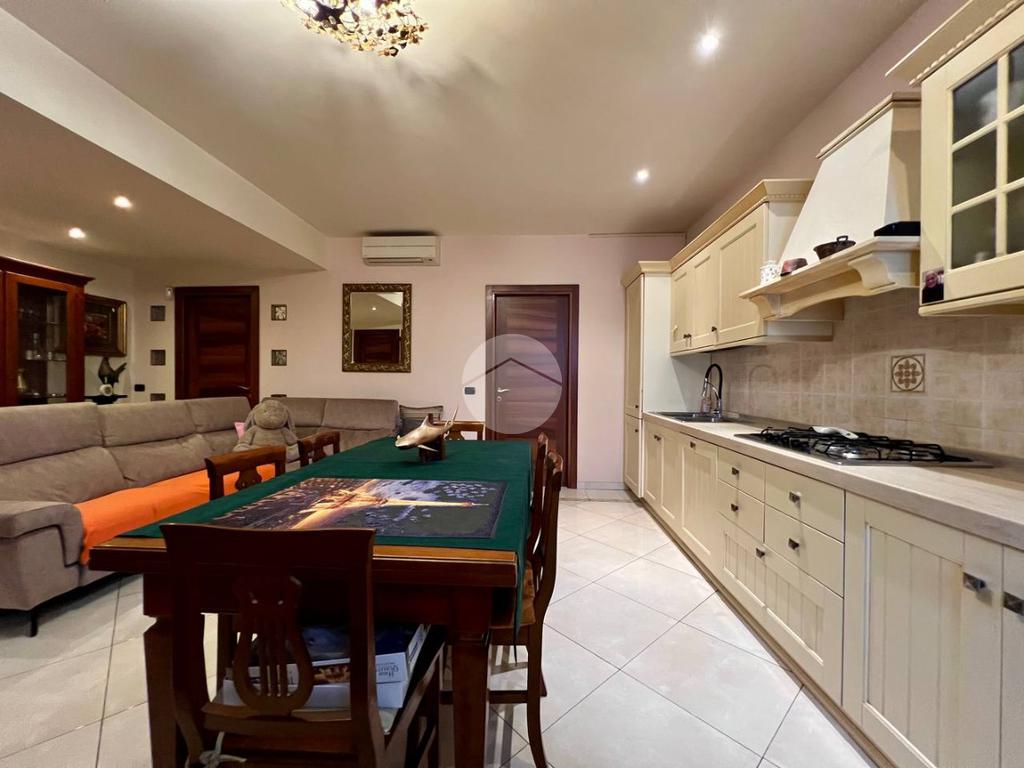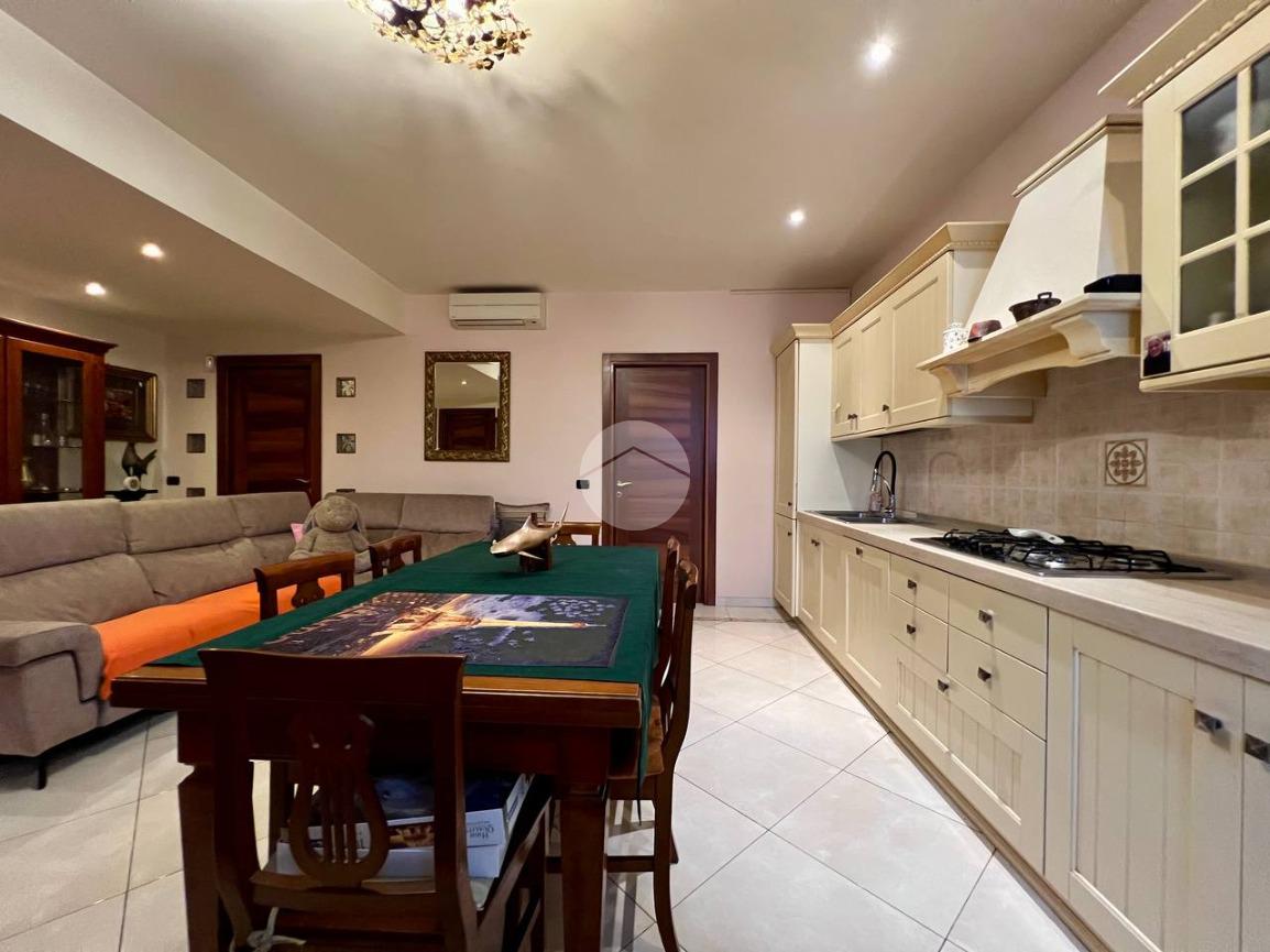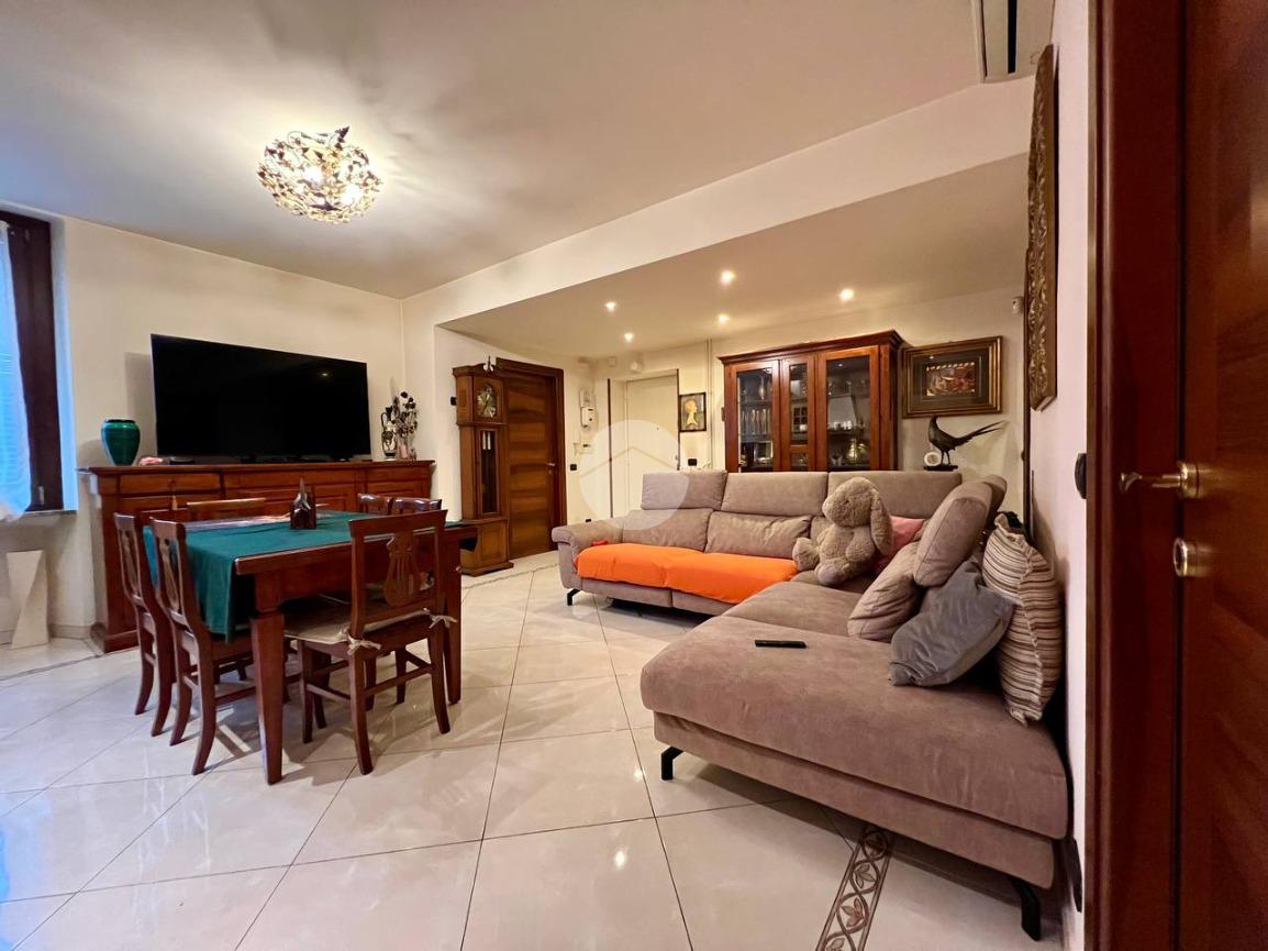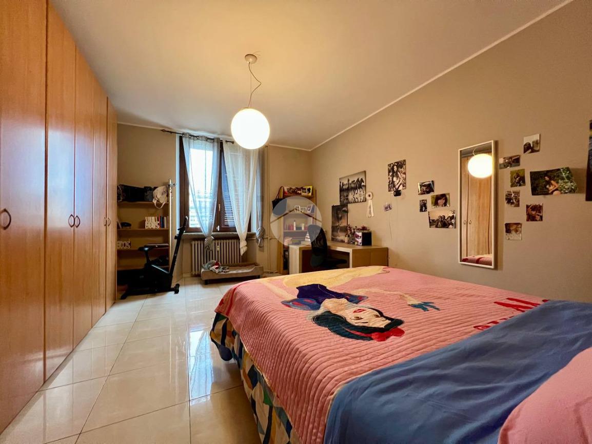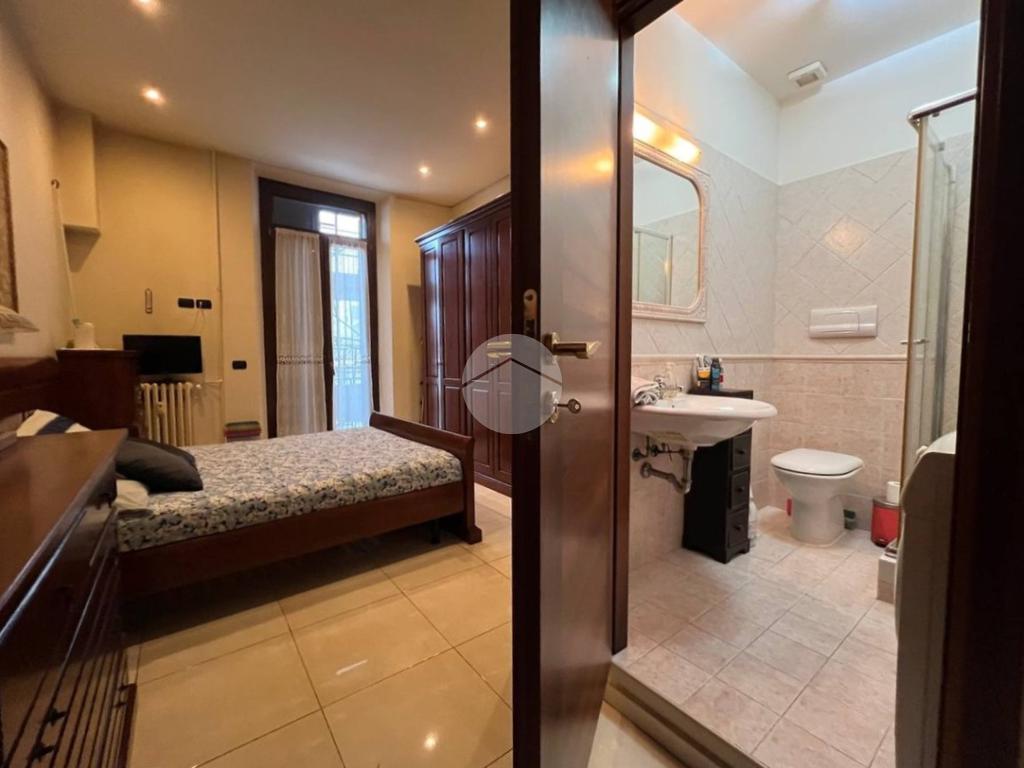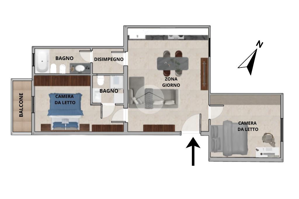 L’appartamento è composto da ingresso su ampio soggiorno con cucina a vista, due camere matrimoniali di cui una dotata di bagno privato e balcone che affaccia all’interno del cortile condominiale, antibagno e bagno finestrato. Completa la proprietà una cantina di pertinenza.