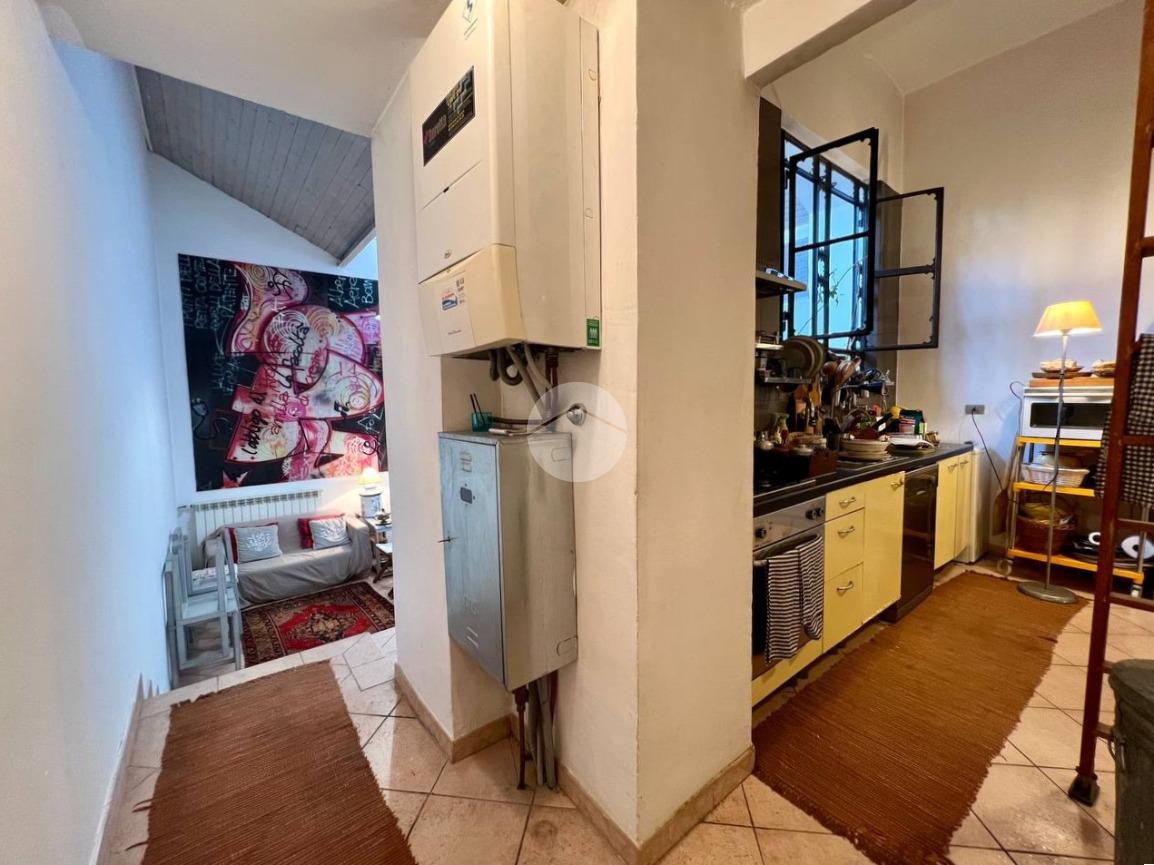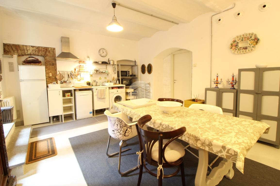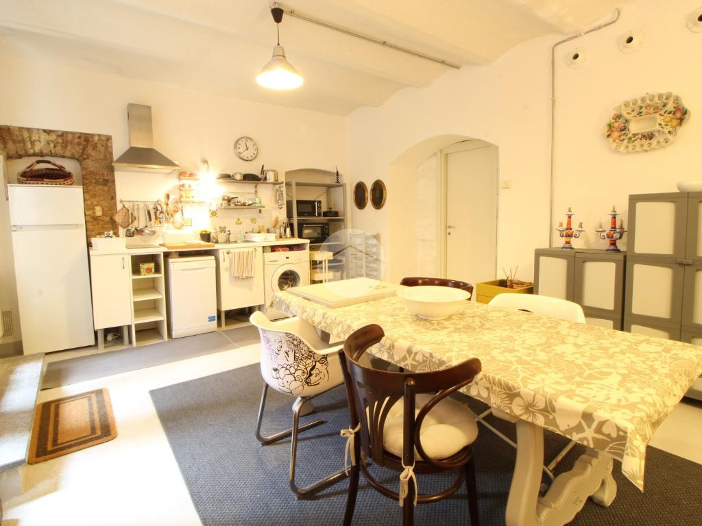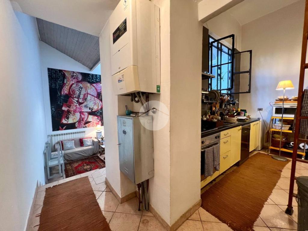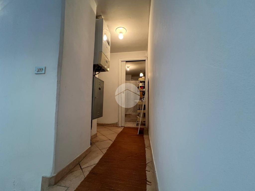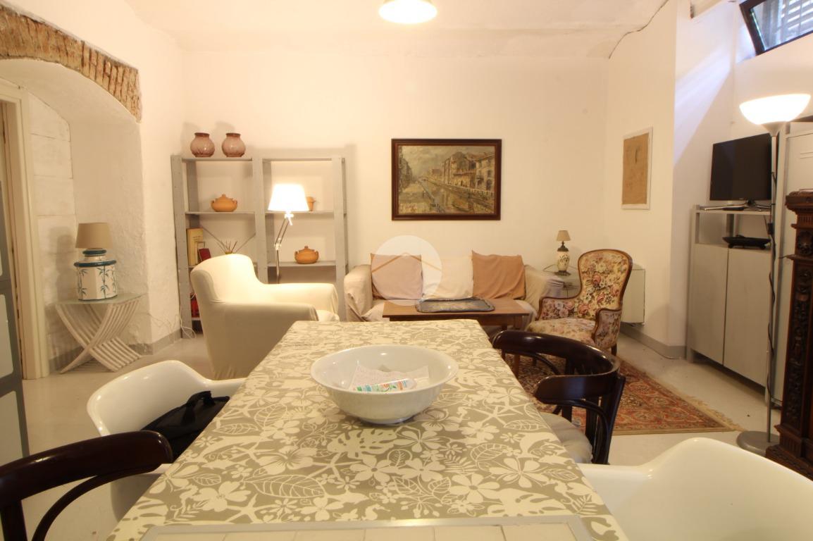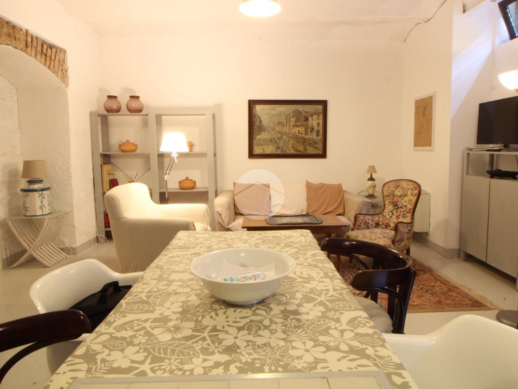 L'immobile è così attualmente composto: ingresso su uno spazioso soggiorno doppio con cucina a vista dotato di ripostiglio aereo, bagno, camera matrimoniale ed un cortile coperto di proprietà.