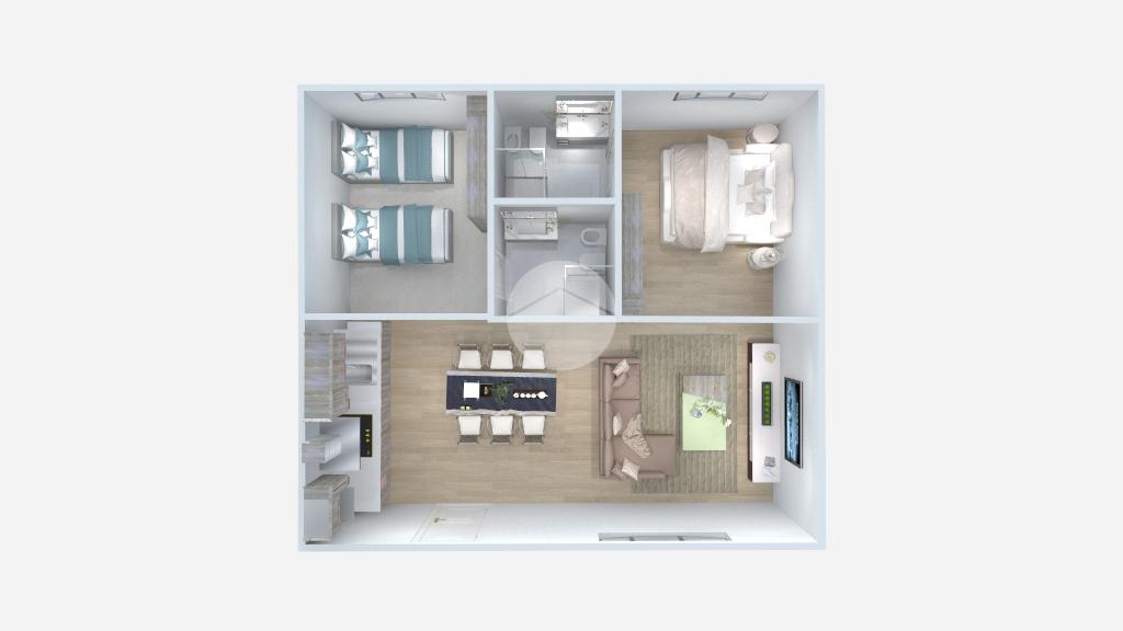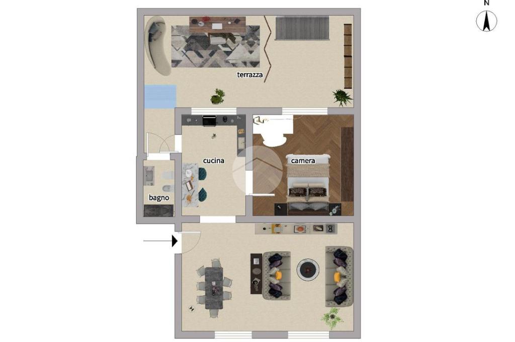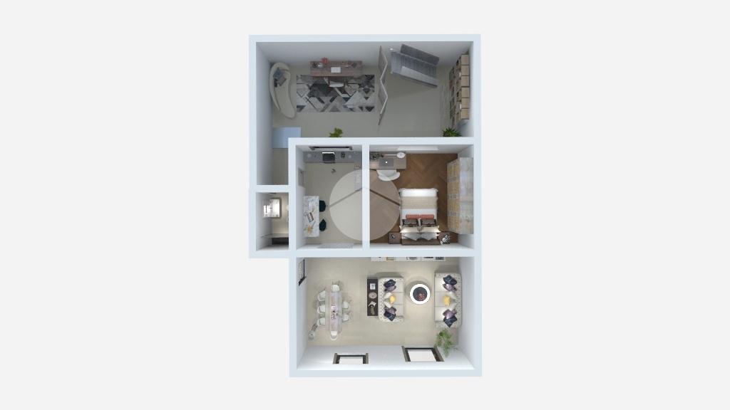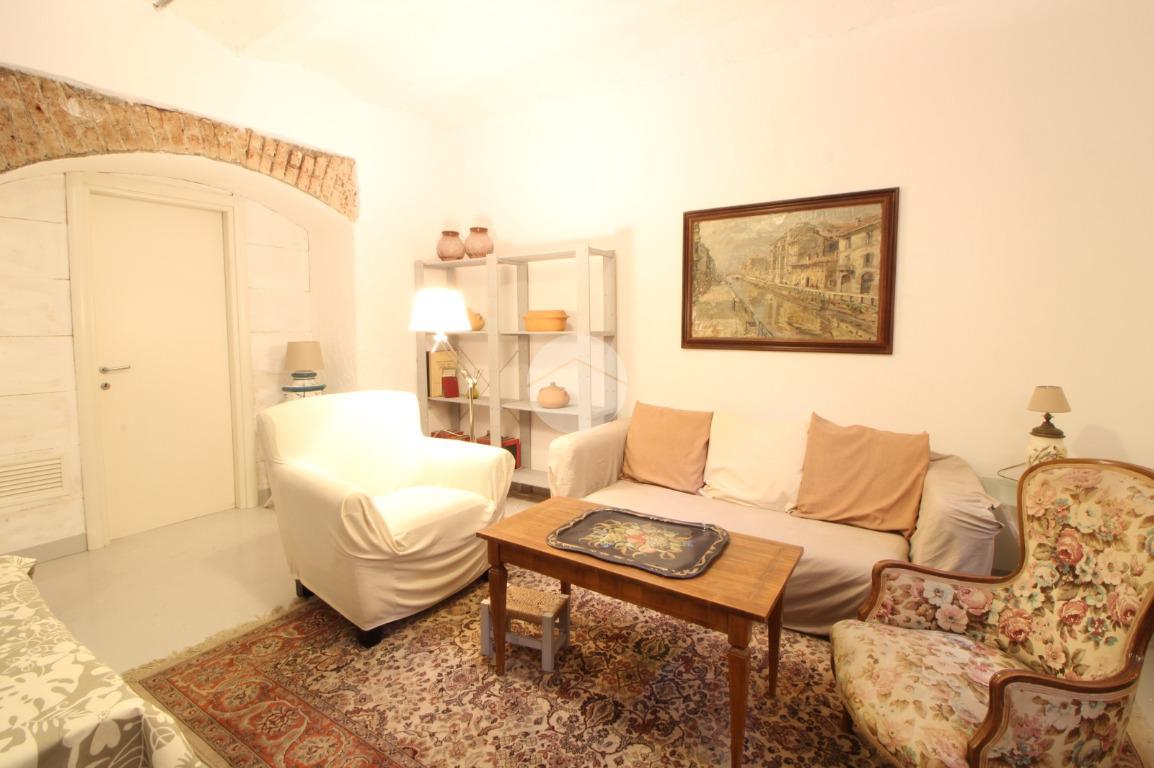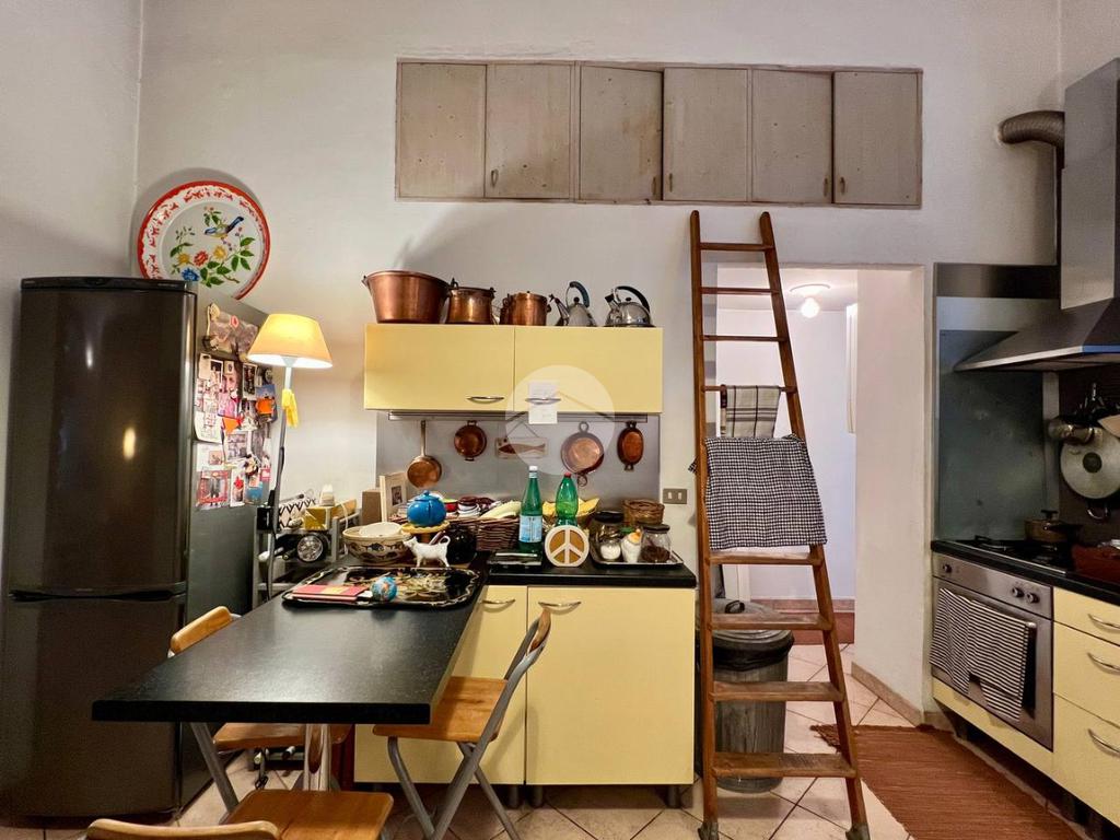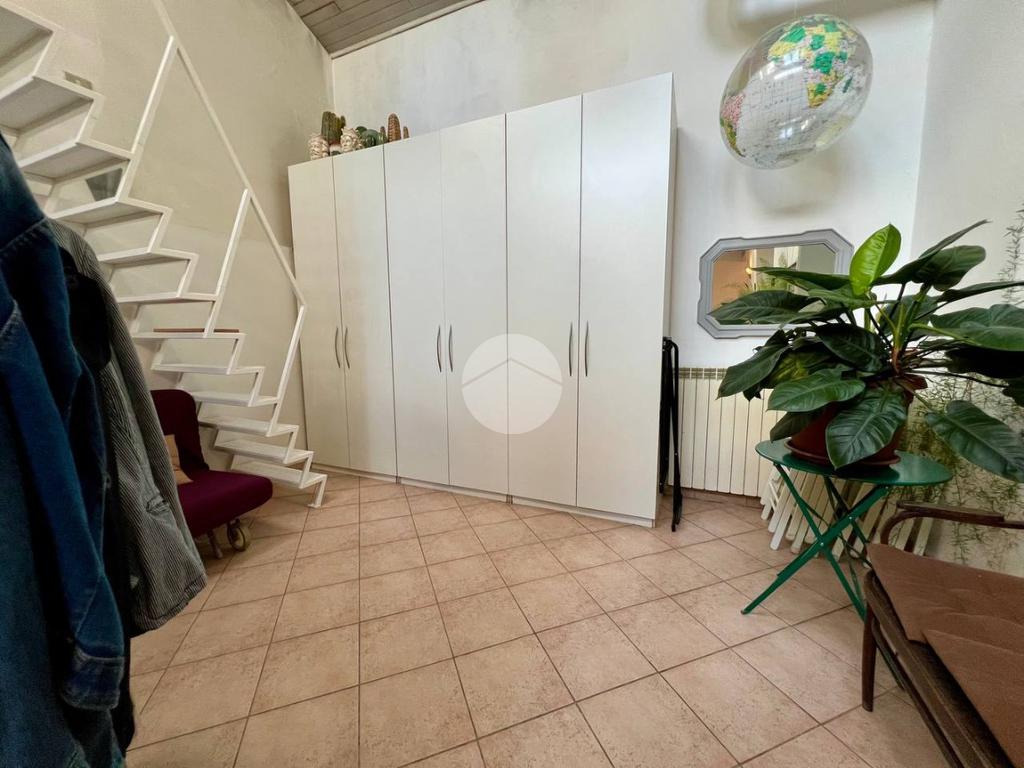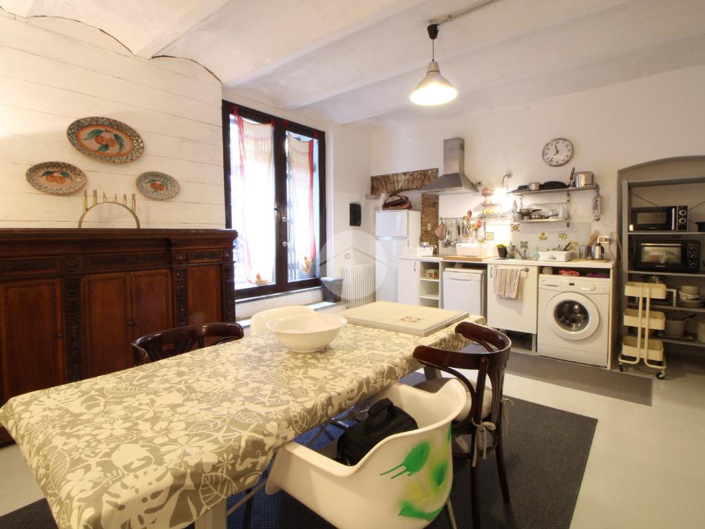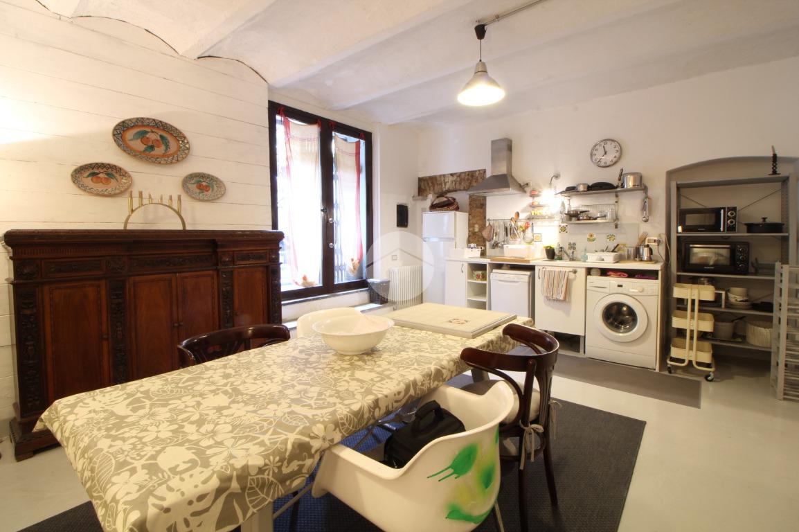 L'immobile è così attualmente composto: ingresso su uno spazioso soggiorno doppio con cucina a vista dotato di ripostiglio aereo, bagno, camera matrimoniale ed un cortile coperto di proprietà.