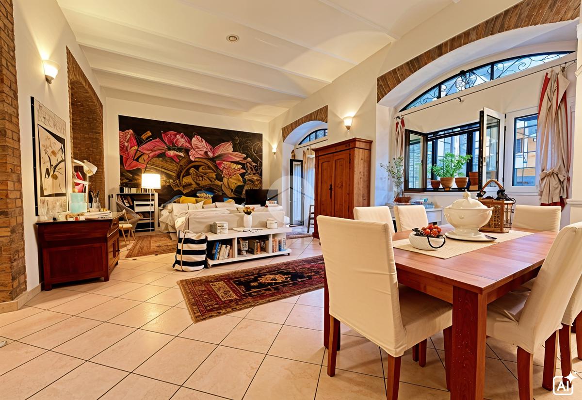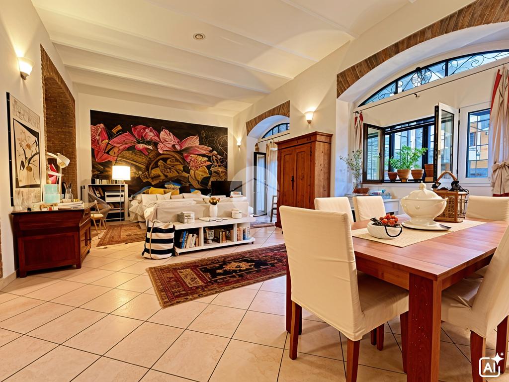 La disposizione degli ambienti permette di personalizzare gli spazi secondo le proprie esigenze, mantenendo il fascino delle caratteristiche architettoniche originali.
